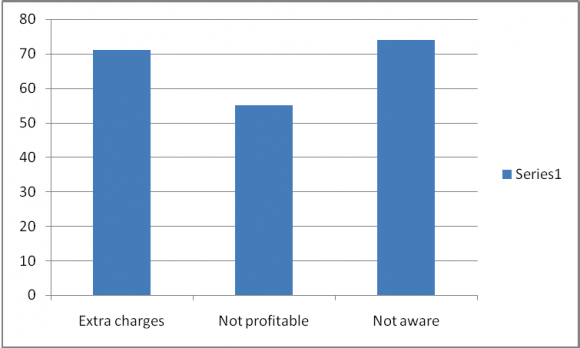 As this study is empirical in nature so that primary data was collected with the help of a structured questionnaire. To study the usage of available features of debit and credit cards, primary data was collected from 200 customers, 40 customers from each selected bank in the sample named Citibank, Standard Chartered Bank, HSBC, State Bank of India (SBI) and Bank of Baroda from Punjab state in northern India with the help of convenient sampling method. . And secondary data has been collected from internet, journals, articles and other publications. Statistical comparisons are made with the tables, graphs and ratio analysis. Fig 8 shows that 56 % of the customers having debit cards are not using all other features than money withdrawn because they are not aware for other features offered with their cards. It shows that non-usage of all features of cards has one reason that was due to lack of awareness about all the features of the cards. 37 % people responded that the reason behind the nonusage of some features was that those features are not profitable for them. And 33% of total respondents were not used the features of debit cards because banks has extra charges for the same and 7% people thought that they have no need of these features only money withdrawn was enough feature for them. But the basic condition behind that was customers has to pay some charges for the same. 53% customers have used credit cards for fuel surcharge waiver. 42% of the total credit card holder used the reward point system.