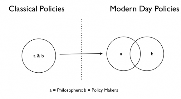 In the era of Plato, they established true aristocracy of Greek philosopher-politician regime (Salkever, 2007), whereby ruling to them was a simple fabrication of technical matter of construction or fashioning laws and institutions (Steinberger, 1989). IbnKhaldun and Confucius were also great philosophers and also served as policy makers. This would be a reasonable relationship as philosophical underpinnings would be useful in managing strategies (Mir and Watson, 2000). However, authors have questioned the basic principles of ethics, political philosophy (Ferguson, 2004) that should be within the policy making system (Bell, 1993).